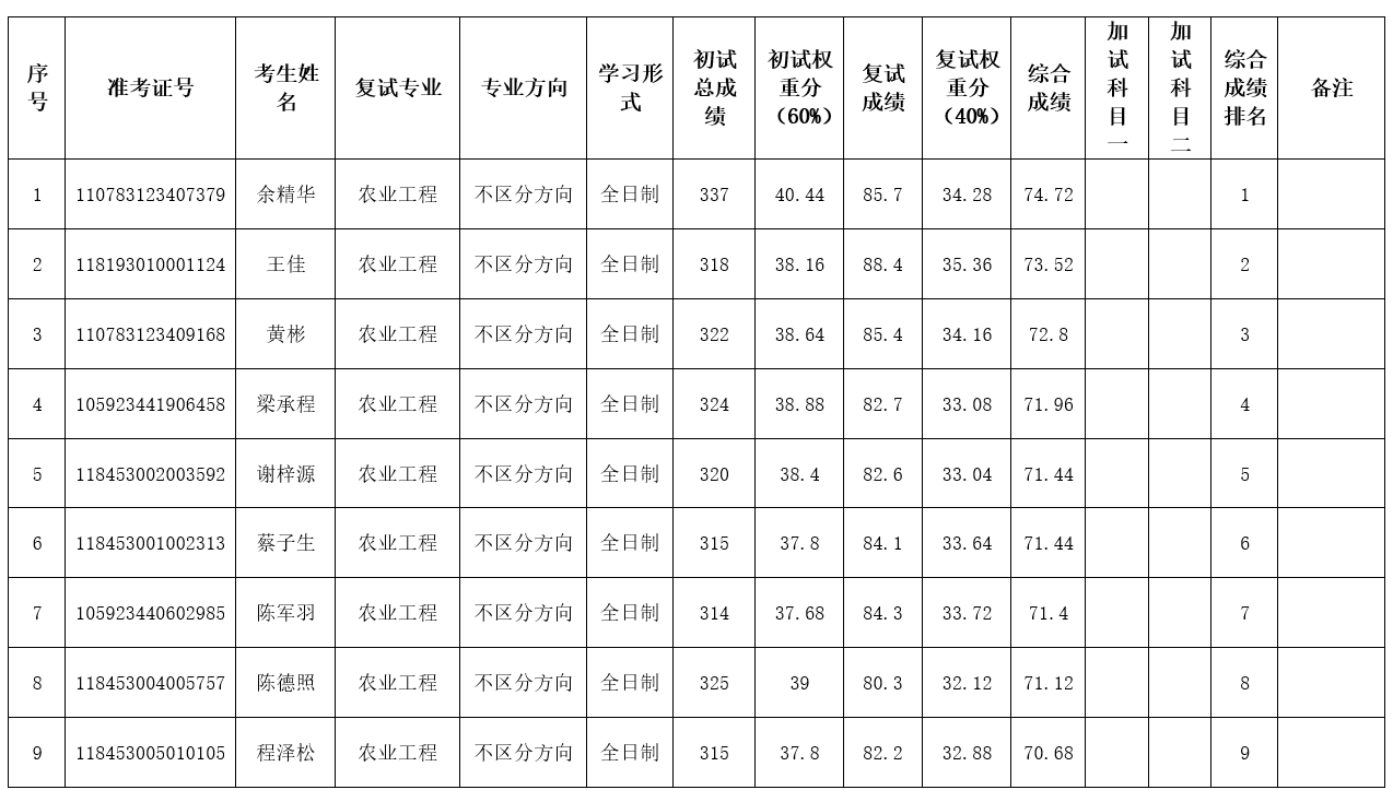 仲恺农业工程学院2023级硕士研究生复试成绩汇总表(调剂第一批)-明胜m88官网