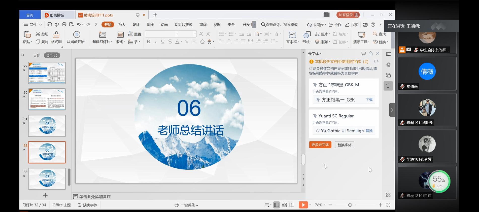 然后,辅导员王澜珂老师和熊伟老师作总结讲话。王澜珂老师表示助班是新生的大学的领路人,更是思想的领路人,是构建班主任与学生之间的桥梁。她指出助班在未来工作中要细致关注学生动态、身体情况,注重各班班干选取。最后,对新生助班们提出五点要求:一是,要有党性、树立正确的三观。引导新生爱国、爱校、爱学院、爱班级,培养新生班级归属感;二是,要注重激发新生热情。积极帮助新生们开展班级管理,打造良好的班风;三是,要具有良好责任感。做好迎新、军训、班级早期建设工作以及引导新生尽快转变角色;四是,要建立完备的信息体系。主动了解助学贷款、专业培养计划等具体信息;五是,要有健康的体魄。积极培养自身锻炼意识,养成良好身体基础。