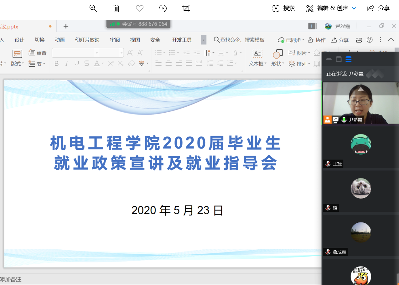 然后,尹彩霞老师针对近期毕业生求职心理调适给出了五点建议:一是要正视疫情影响给毕业生就业带来的挑战,因疫情影响,部分企业纷纷经济性裁员,缩减用人规模,给毕业生就业带来一定困难;二是积极应对疫情影响给毕业生就业带来的影响,为了缓解就业压力,从国家到地方出台了一系列促就业稳就业的措施和优惠帮扶措施,希望毕业生们能保持积极的心态,增强就业信心,主动求职就业;三是善于倾诉,希望毕业生在毕业就业过程中遇到的困难要善于跟父母、老师、朋友倾诉和沟通,及时疏导心理压力;四是要调整就业预期,疫情下部分企业裁员缩减用人规模,我们要根据当前形势适当降低就业预期,树立“先就业再择业”的心态,主动适应当前形势需求;五是要把握机遇,疫情下衍生出一些新产业新业态,要善于转危为机,在挑战中寻找机会,在逆境中求得生存和发展。