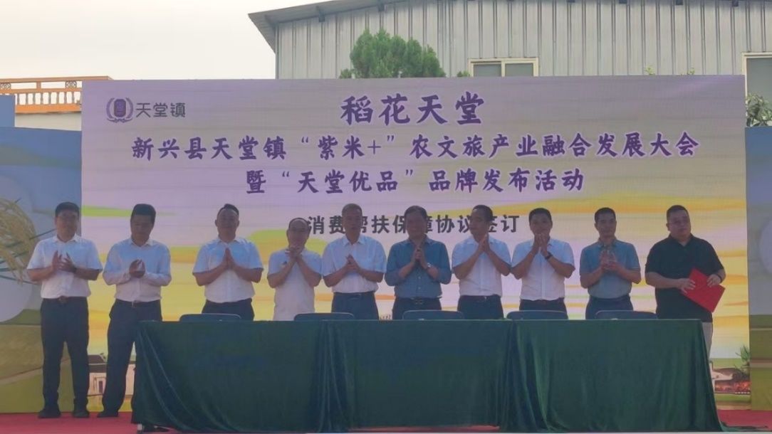 此行,新一轮特派员团队参加了新兴县天堂镇“紫米+”农文旅产业融合发展大会,深入了解了当地的特色与拳头农产品,并与当地镇政府签署了政府高校结对合作协议。协议内容涵括农产业升级、品牌推广、科研合作与人才培养等,为实现双方优势互补、优势互补奠定基础。