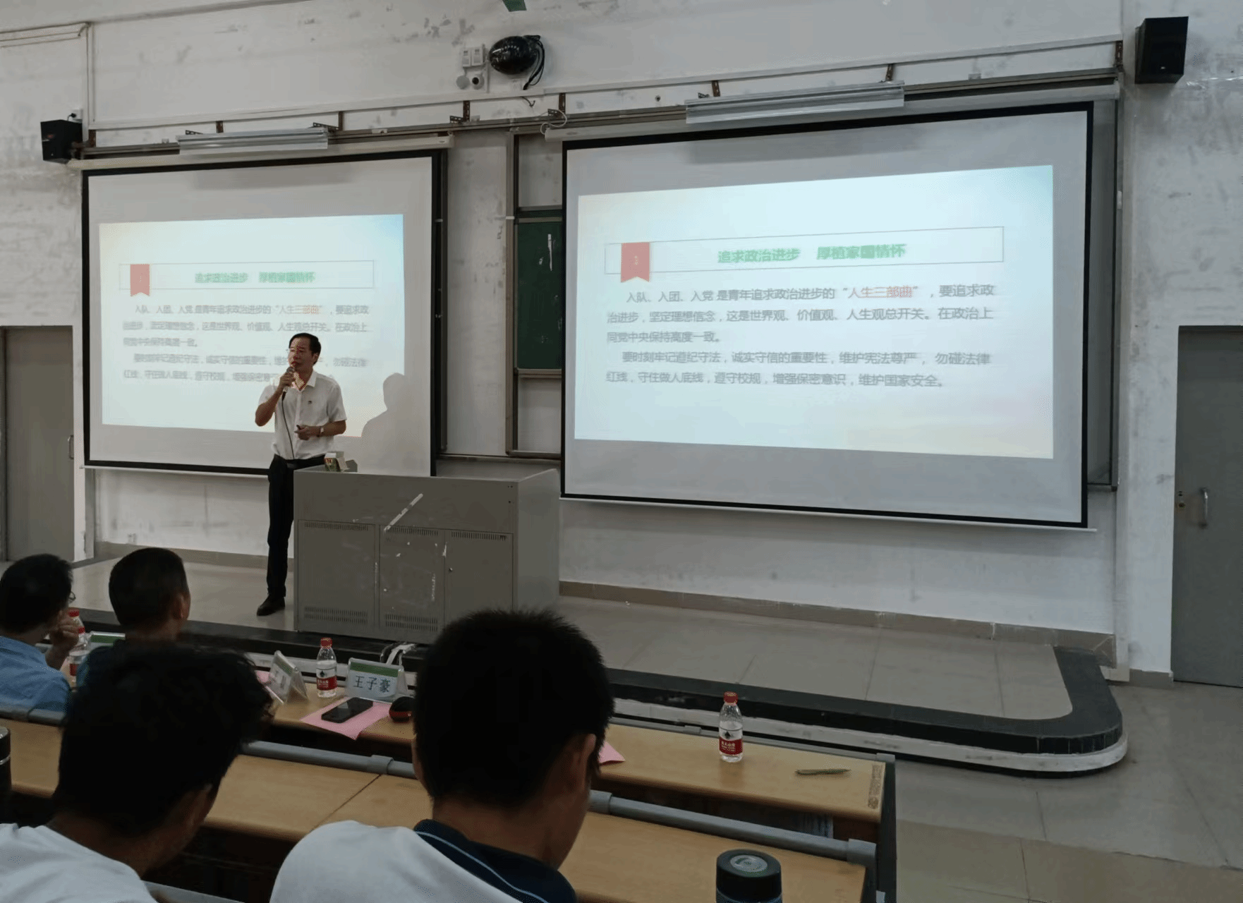 学院党委书记廖起彬以“传承仲恺精神,做到知行合一”为题开讲新生第一课。廖书记详细介绍了学校的办学历史和文化传承,希望同学们尽快适应大学生活,做好大学生涯规划,同时提出三点要求:一是追求政治进步,厚植家国情怀;二是传承仲恺精神,做到刚健有为;三是践行知行合一,提升创新能力。