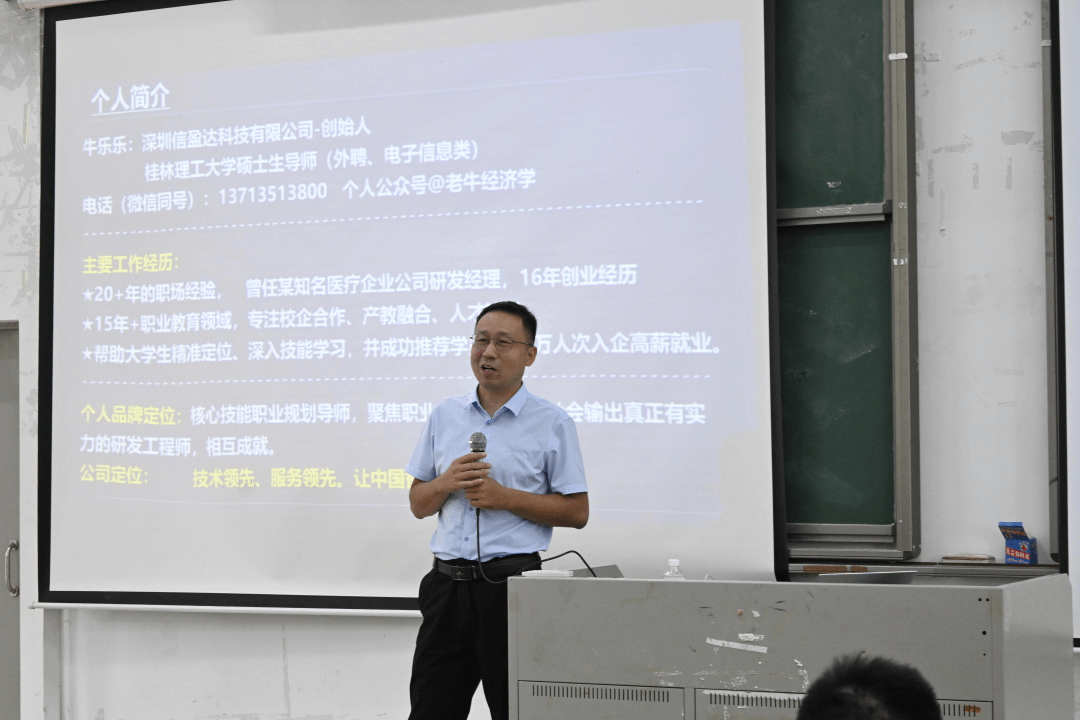 会后,举行了嵌入式技术专题讲座,深圳信盈达科技公司创始人、总经理牛乐乐为明胜m88官网150余名学生进行了专业的、深刻的技术讲座,内容包括AIOT嵌入式技术的机遇与挑战、嵌入式AI应用&技术前沿、校企合作方面、如何规划和定位自己等。