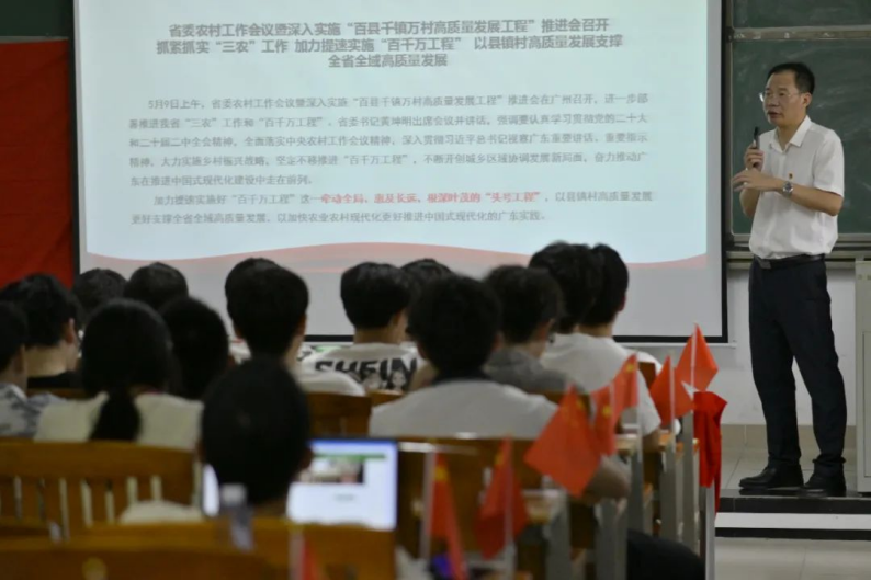 开班仪式后,学院党委书记廖起彬以“学纪守纪,立德立行”为题讲授第一堂课。希望同学们在日常的学习、生活当中要注重纪律约束和提升道德修养,加强理论学习,坚定理想信念,做新时代马克思主义的忠诚信仰者和传播者。要坚持宝贵特质,厚植家国情怀,自觉用中华优秀传统文化启智润心;要涵养创新精神,践行知行合一,秉承“注重实践,扶助农工”校训,助力农业农村现代化。