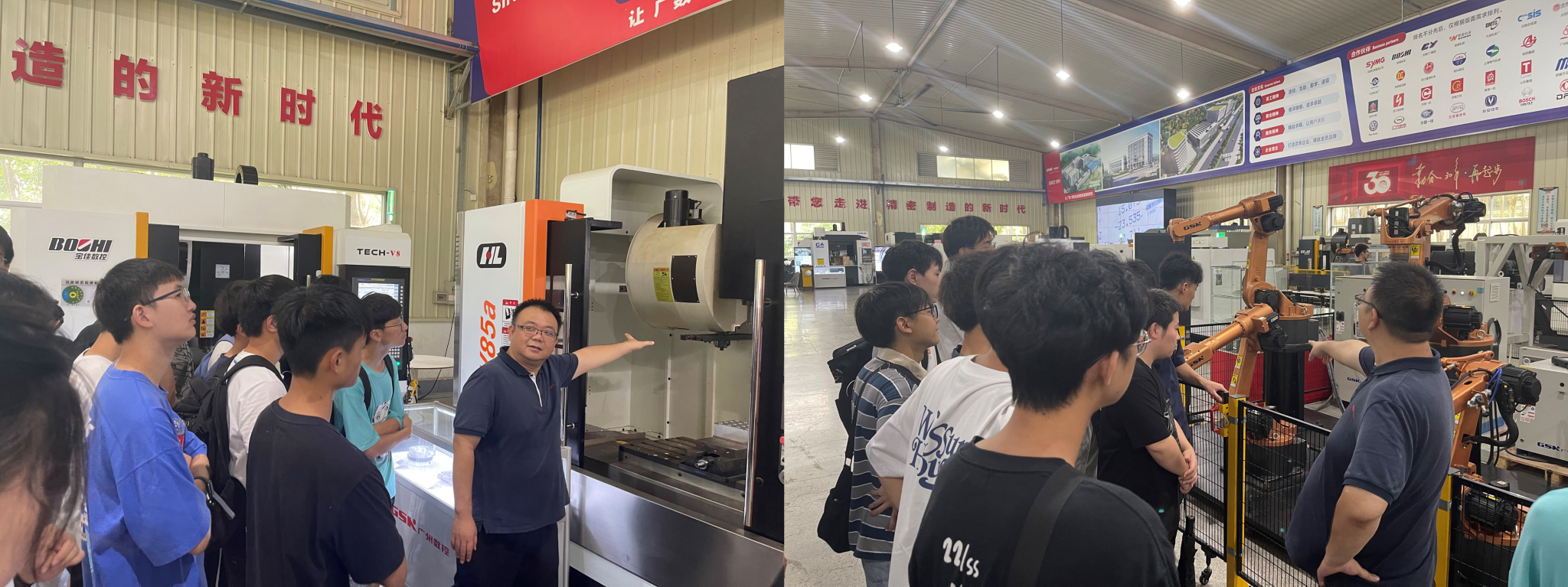 接着,在带领同学们参观了设备展厅、生产车间、企业环境和车间实验室,并对数控设备、机器臂、机器设备零部件做了详细的介绍。不仅让学生们感到耳目一新,还让大家认识到产品从研发到生产各环节精益求精的演变历程。