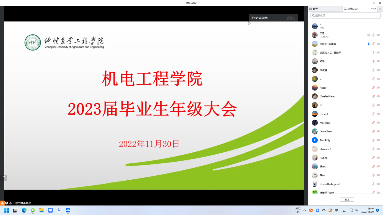 为促进2023届毕业生就业工作,11月30日晚上,明胜m88官网以线上方式召开年级大会,会议由辅导员田思主持,辅导员郑攀及学院2023届毕业生参加。