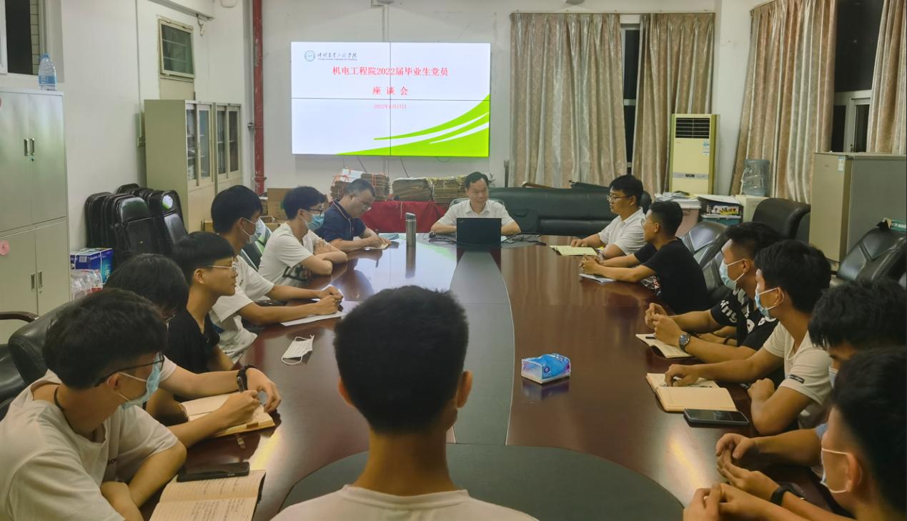 6月17日晚,明胜m88官网在白云校区刘楼202会议室召开2022届毕业生党员座谈会。学院党委书记张平湖、组织员郑攀及2022届毕业生党员代表参会,会议由该院党委副书记何宝国主持。