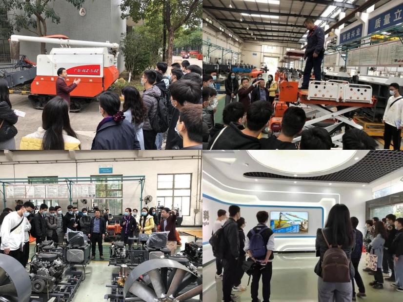 师生一行在黄瑞森副所长及相关领导和技术人员的带领下,参观了农机产品生产车间、样机展示厅、实验室和科技成果展示厅,听取了该所在农产品加工、设施农业装备、种植及养殖机械等方面研制的新产品和新技术;还学习了丘陵山区数字果园、南方水稻数字农场、华南型智能温室生产、高密度生态养殖数字猪场和渔场等全程解决方案,及数字化管理体系的构建模式。