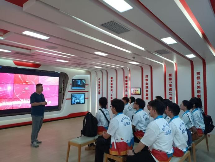 “红色羊角”党建基地以“初心展厅——使命长廊——实践课堂”为主线,通过图文矩阵、模拟情景形式,全景呈现广州地铁“党建+业务”融合实践成果。蔡立彬院长结合地铁建设者奋斗案例,为大家现场讲授《红色基因传承与青年成长》专题党课。他强调要辩证把握科技进步与社会治理的共生关系,锚定“服务国家战略、回应民生需求”的价值目标,为科研实践注入“科技报国”精神坐标;要深刻把握“忠诚、创新、为民”的精神内核,积极拓展学习内容,实现专业硬核与思政底色的深度耦合,努力成长为“一专多能”的复合型人才。董飞武老师组织大家开展了“党建引领科研攻关”研讨,鼓励大家践行“红色领航科研方向,专业赋能国家战略”的行动路径。李筱曼老师现场带领学生党员们重温入党誓词,引导学生们注重理论与实践相结合,增强全心全意为人民服务的宗旨意识。