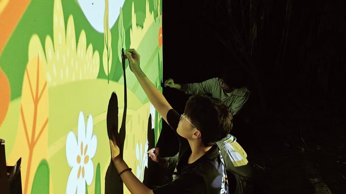 图为“寻光”突击队员在墙绘。陈恺楠 供图