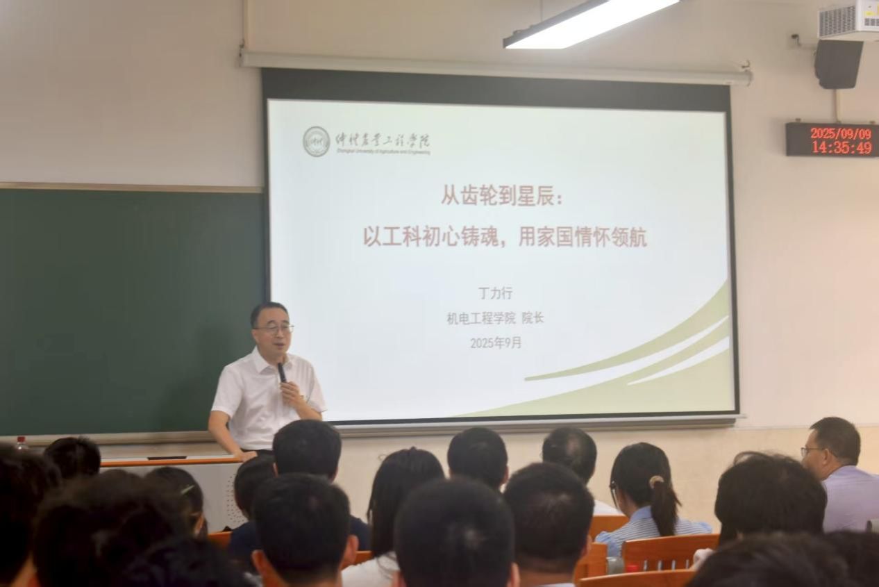 会议伊始,学院党委副书记、院长丁力行以“从齿轮到星辰:以工科初心铸魂,用家国情怀领航”寄语新生。他详细介绍了学院的办学历史和各专业未来发展方向,鼓励新生在大学阶段既要夯实专业基础,也要培养创新思维,将个人理想融入国家发展大局。