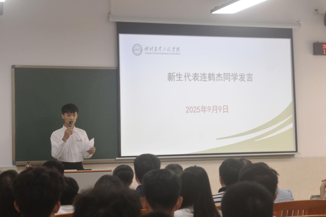 紧接着,机电251连鹤杰作为新生代表发言,他分享了初入仲园的感受,表示将以优秀校友为榜样,以服务乡村振兴为己任,珍惜大学时光,积极参与社会实践,努力成为有理想、敢担当、能吃苦、肯奋斗的新时代青年。随后,学院党委副书记赵栋围绕“适应大学生活,培育优良学风”展开入学教育。他从学业规划、校园安全、心理健康等方面进行详细讲解,强调新生要尽快转变角色,树立规则意识,主动适应大学的学习节奏与生活方式。